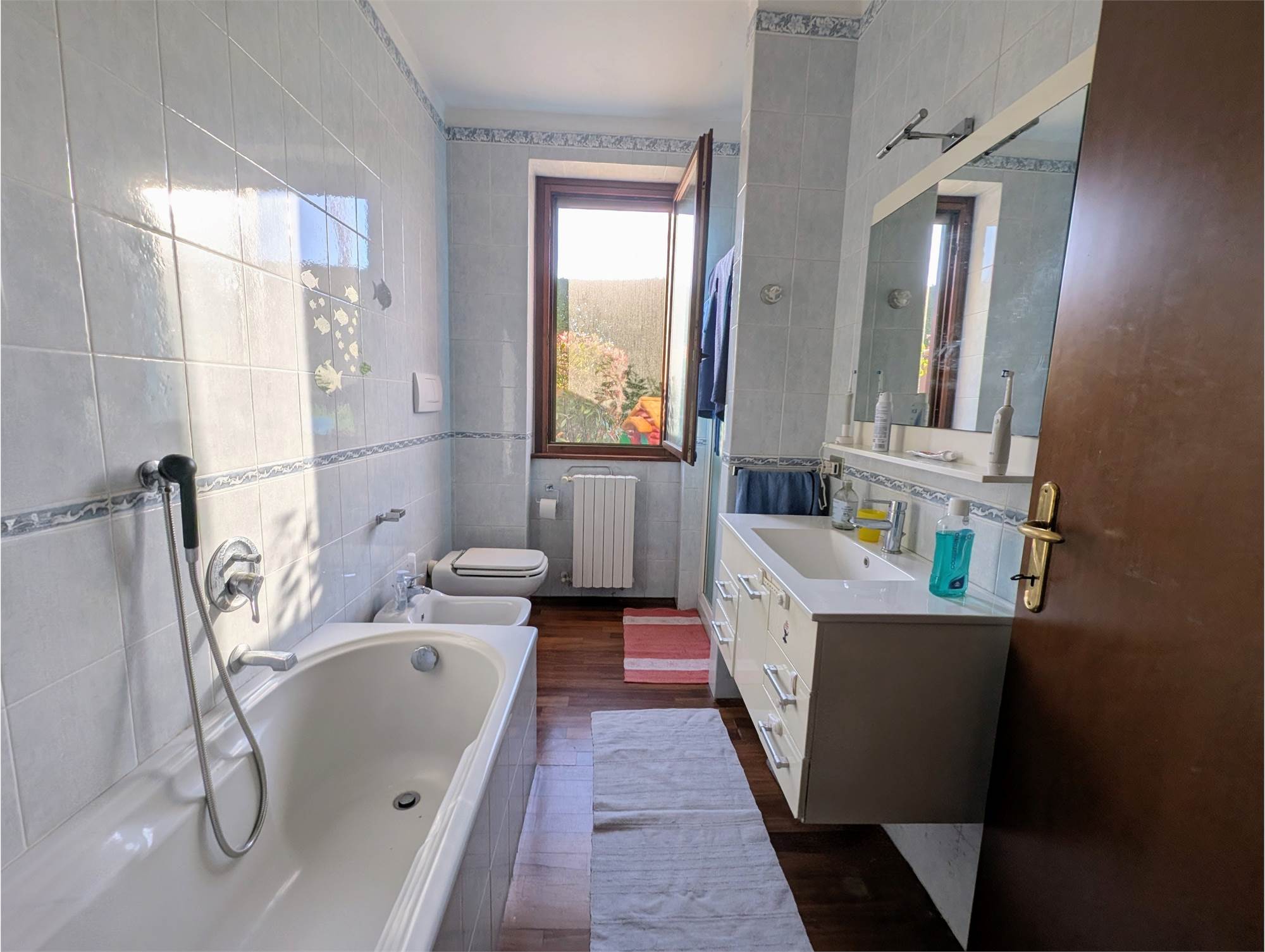 Completa la proprietà un bagno finestrato con doccia e vasca da bagno.