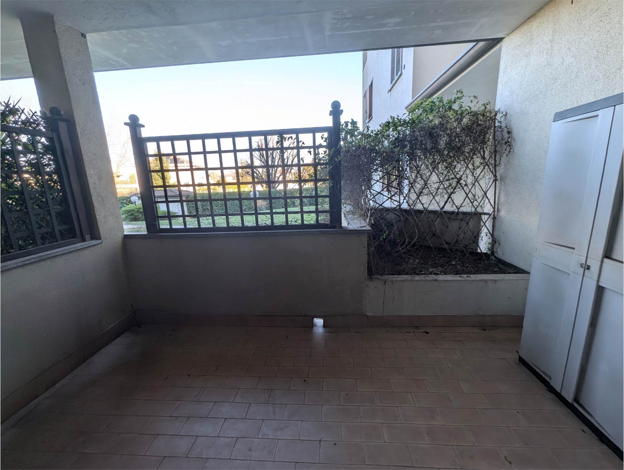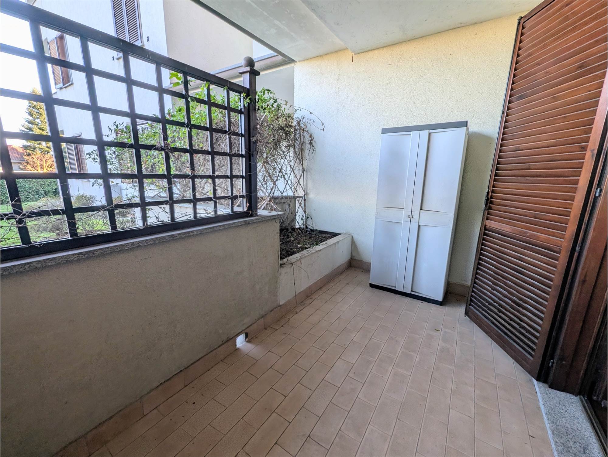 Il vero valore aggiunto dell’immobile è lo splendido terrazzo di proprietà, una superficie generosa e interamente pavimentata, delimitata da siepi rigogliose che assicurano una privacy assoluta.