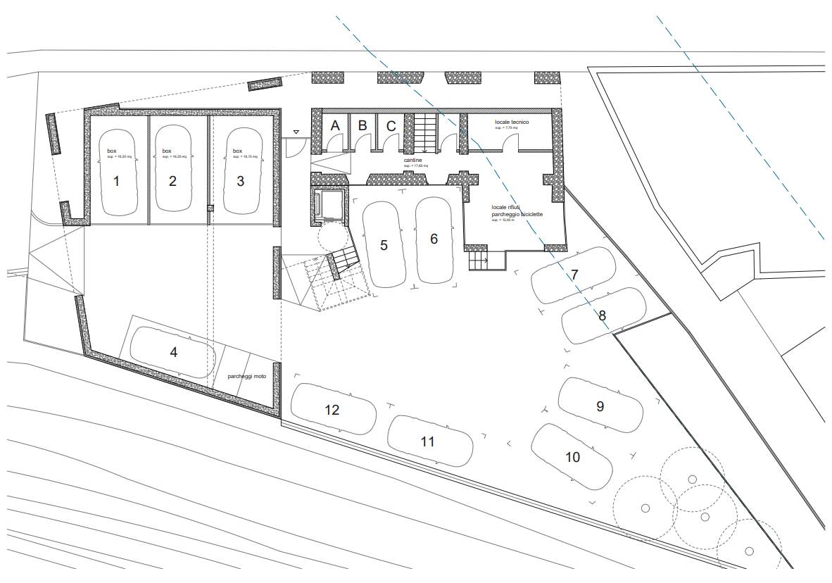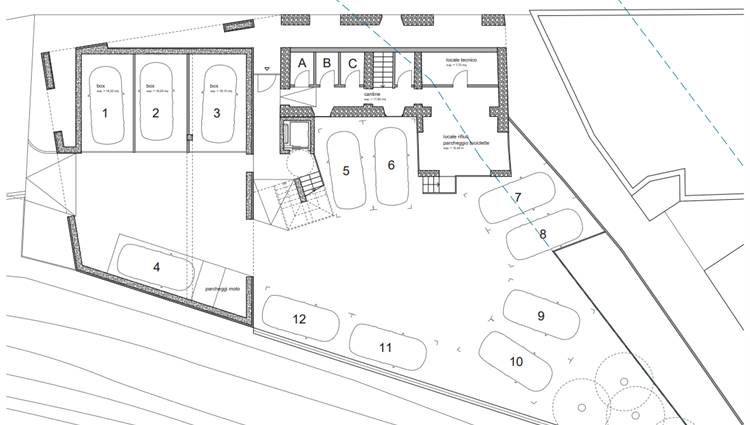 Completano la soluzione due posti auto scoperti al piano terra ad € 15.000 l'uno, il n,5 e 6.