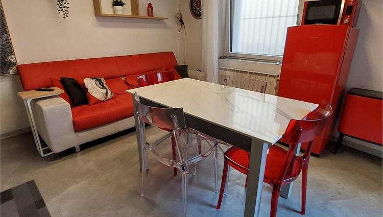 L'immobile è inserito in una casa d'epoca in sasso a vista, dotato di riscaldamento autonomo. L'appartamento è raggiungibile a piedi a circa 100m dal parcheggio pubblico non a pagamento e non risulta disturbato dal traffico.