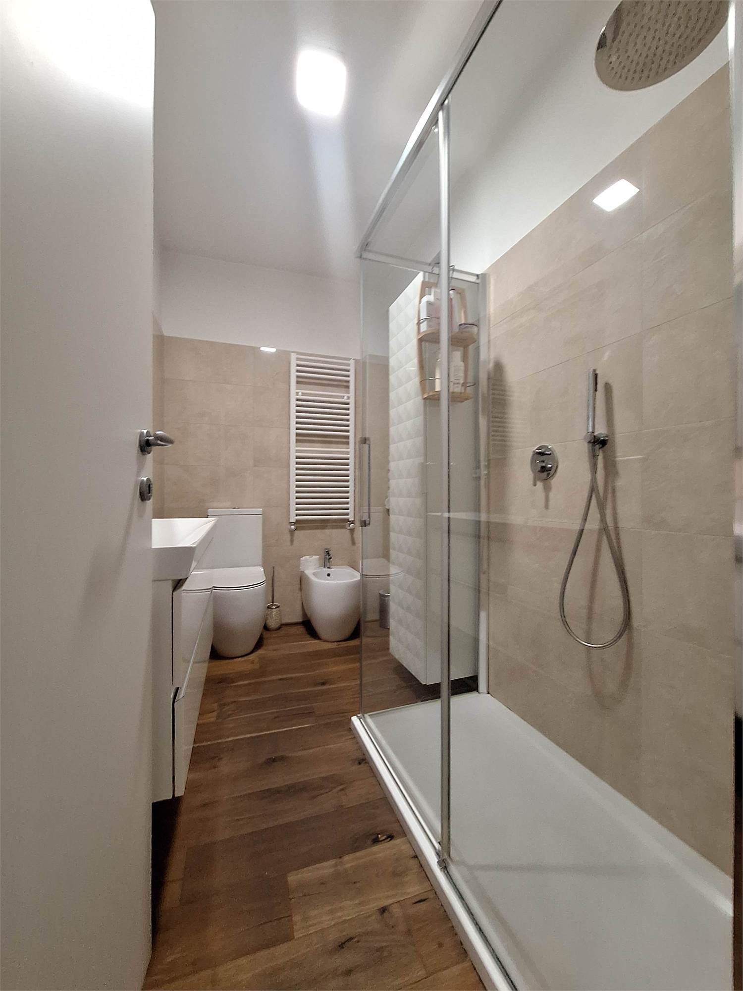 L'abitazione è stata recentemente rinnovata negli interni con vero parquet totale, bagno rifatto a nuovo con doccia doppia, impianto elettrico nuovo, caldaia nuova a condensazione, ricavata anche la mansarda che prima era un solaio.