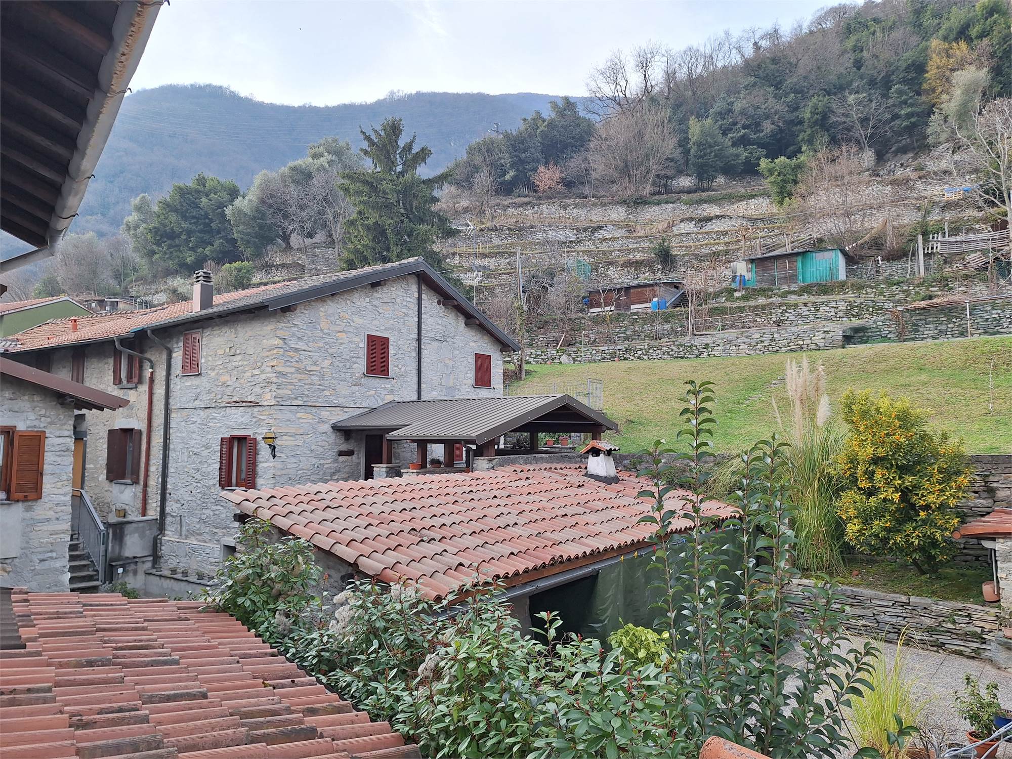 Tipica casa di lago in Sasso di Moltrasio, non raggiungibile in auto, circa 150 metri di strada pedonale nel bellissimo centro storico di Cavadino.