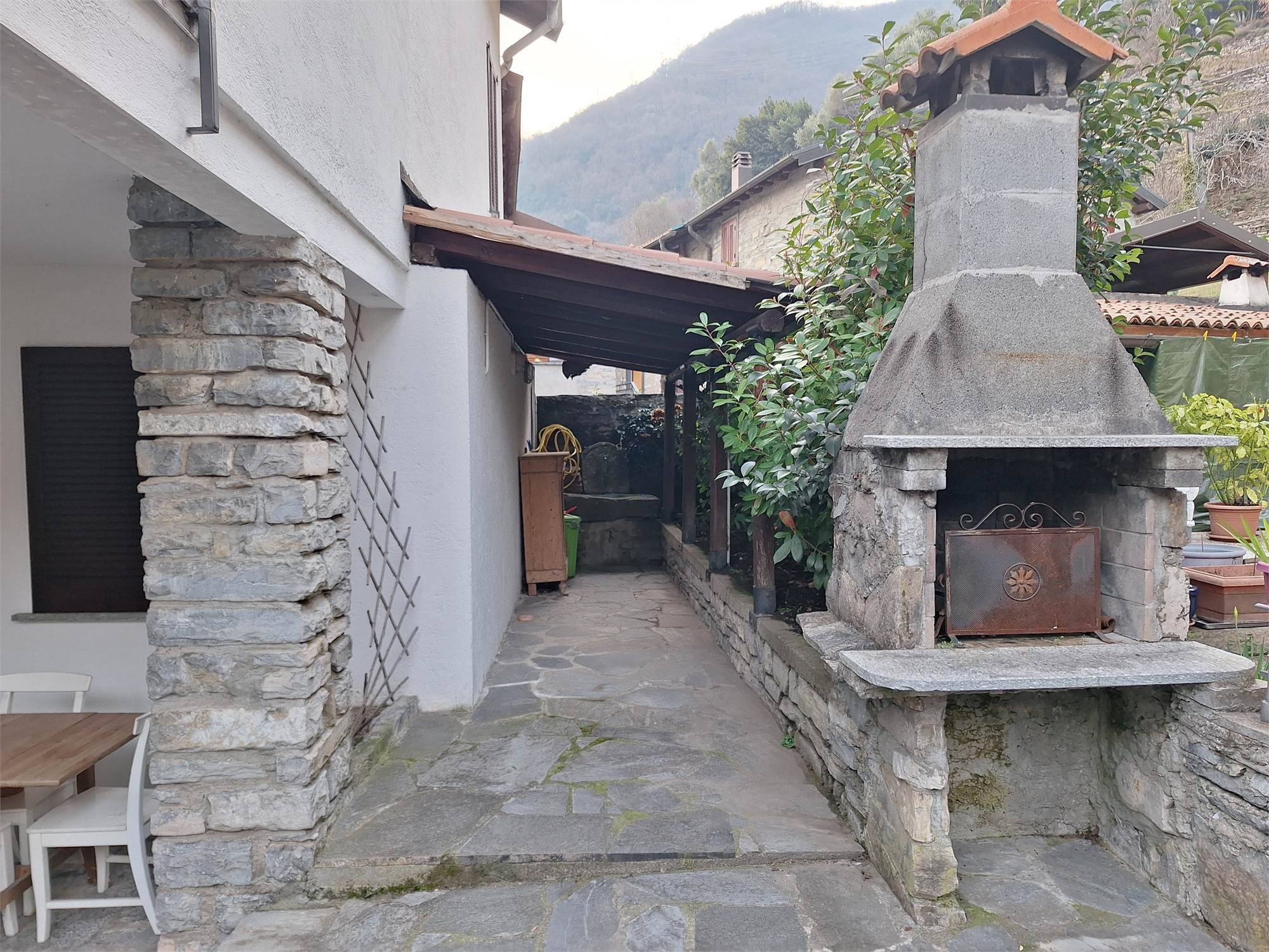 La casa ha uno spazio di proprietà con pavimentazione in sasso e barbecue.