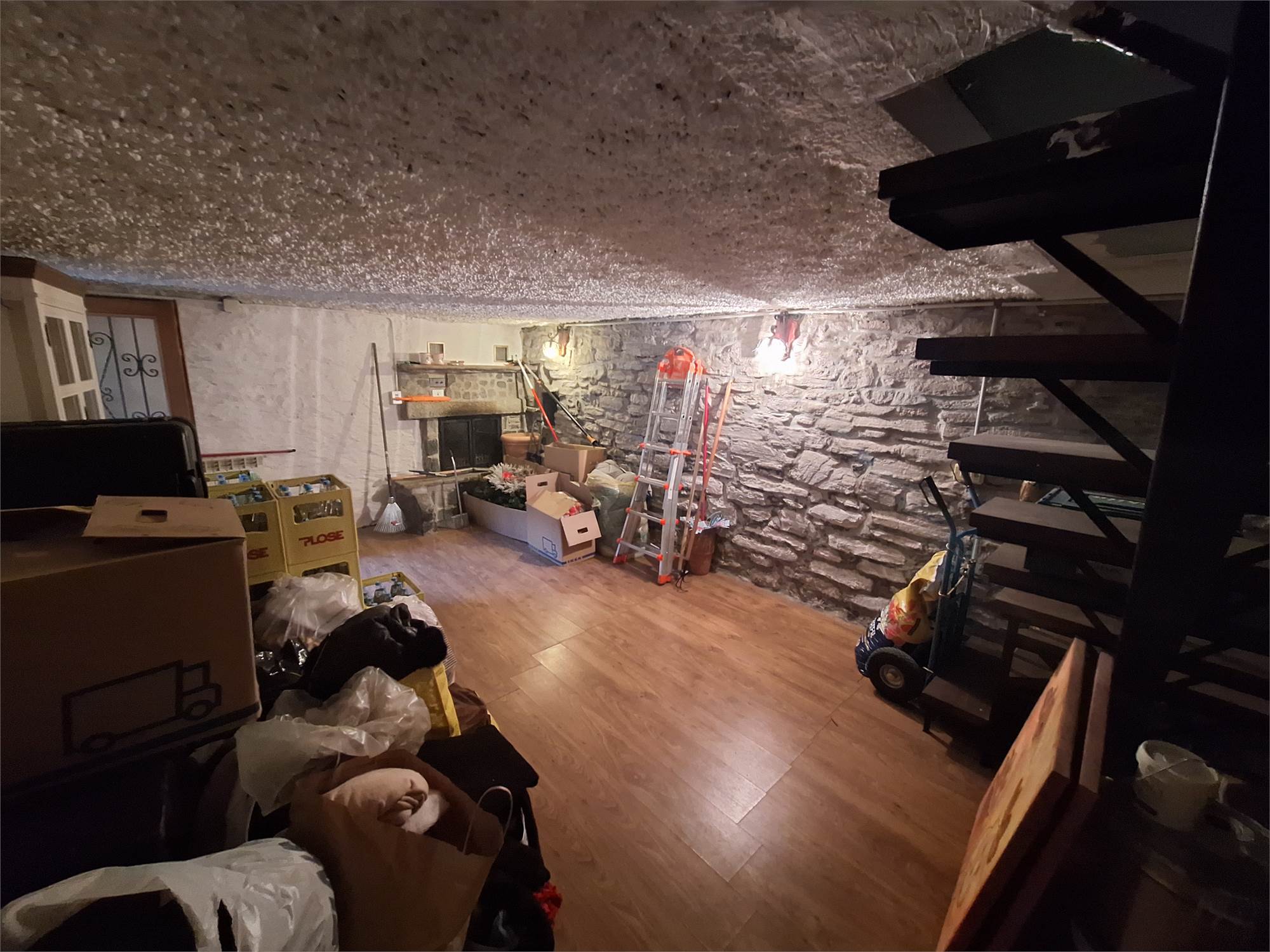 Al piano terra uno spazioso locale Taverna/ripostiglio con camino a legna, ventilato.